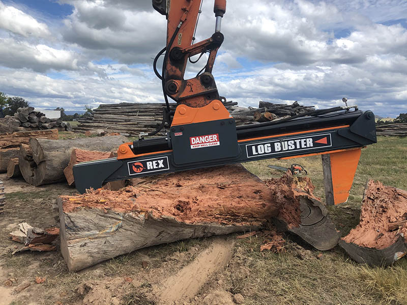 Initial field tests, shown on the video footage, show the Log Buster breaking up ugly red gum and yellow box logs up to 4 ft in diameter. This wood yard had accumulated a huge quantity of oversize logs over time, so the owners were certainly happy to have this machine tested on site. Over two days (16 machine hours), approximately 500 tons of oversize logs were processed and split to a size that the Rex 800 Log Saw could handle. The equivalent job on chainsaws was estimated to be about four months work, highlighting the massive efficiencies that can be achieved with this machine.