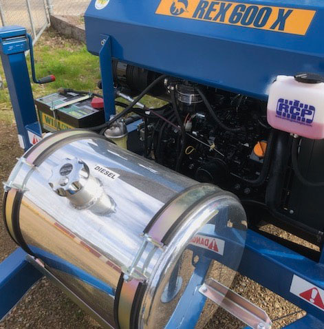 The Rex 600X model is a jump up from the 600 due to the inbuilt hopper. The multi head blade system however is the same, and can produce up to four pieces per stroke resulting in high output with minimal labour. This machine is powered by a 37hp Yanmar engine and features a 6 second cycle time and 16ft fold out elevator fitted as standard. Rollers in the bench make for easy block movement. It is fitted with the innovative and safe (auto return) double handed control system and easily accessed elevator & hopper controls. The Rex 600X can also be fitted with a registration kit for safe and legal road towing.